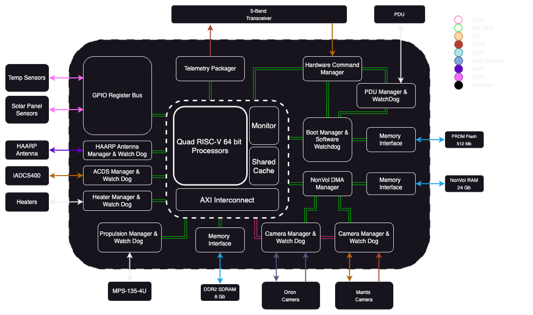 - Design and develop DMA steams from memory to transiever to potentially reduce CPU load when downlinking data from nonvol memory